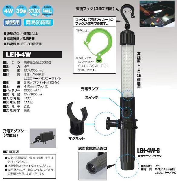 充電式LEDハンディライトLEH-4W-B 日動(NICHIDO)【送料無料】価格: 10,500円レビュー評価: 0.0 レビュー数:0 充電式LEDハンディライトが、従来の3Wより明るくなって新登場!充電式LEDハンディライトフックで吊るす、マグネットで貼り付けるが自由自在のハンディライトに4Wが新登場。より明るく安全に作業ができます。●連続運転 4時間以上、充電時間5.5時間●超高輝度LED39個使用■LED 高輝度白色39個使用■出力 4W■光度 507,000mcd■材料 本体ABS樹脂/LEDカバーポリカーボネイト■重量 218g(マグネット付234g)■全長 410mm(フック含む)■バッテリー 2000mA/h■充電器 5V/800mA■入力電圧 100V■充電回数 500回■充電中 赤色■充電完了 緑色 |