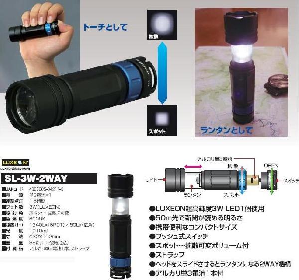 スーパーLEDライト SL-3W-2WAY 日動(NICHIDO)価格: 4,870円レビュー評価: 0.0 レビュー数:0 拡散からスポットまで照射角を自由に設定ランタンとしても使えるスーパーLED2ウエイライト ランタン付■電源単三電池×1■連続点灯 1.5時間■ワット数 3W(LUXEON)■照射角 スポットから拡散に可変■色温度 6000K■照度(1m)1240L×(スポット)/60L×(広角)■光度 1010CD■寸法 直径32×102mm■重量 89g(112g電池込)■付属品 アルカリ単三電池1本、ストラップ簡易防雨型 |
