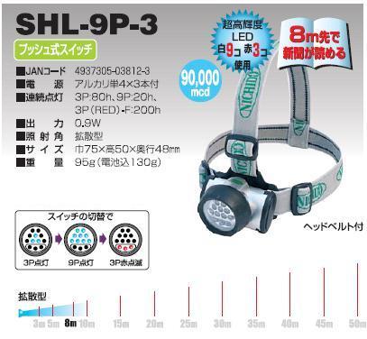 スーパーLEDヘッドライトSHL-9P-3 日動(NICHIDO)価格: 1,950円レビュー評価: 0.0 レビュー数:0 機械のメンテナンスや点検照明に最適!8m先まで新聞が読める■電源 アルカリ単4X3本付■連続点灯 3P:80h,9P:20h,3P(RED)-F:200h■出力 0.9W■照射角 拡散型■サイズ 巾75X高50X奥行48mm■重量 95g(電池込130g)トンネルや暗い場所での点検や検査作業に最適!!登山や夜釣り、キャンプなどのアウトドアにも!防雨型 |