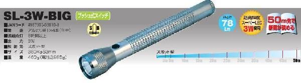 スーパーLEDライトSL-3W-BIG 日動(NICHIDO)【送料無料】価格: 8,450円レビュー評価: 0.0 レビュー数:0 パワフルに明るく照らす!50m先まで新聞が読める■電源 アルカリ単1X4本(別売)■連続点灯 8時間以上■出力 3W■照射角 スポット型■サイズ 380X直径53mm■重量460g(電池込985g)トンネルや暗い場所での点検や検査作業に最適!!登山や夜釣り、キャンプなどのアウトドアにも!防雨型 |