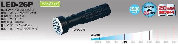 スーパーLEDライトLED-26P 日動(NICHIDO)価格: 2,600円レビュー評価: 0.0 レビュー数:0 機械内部や配管内の点検作業に!20m先まで新聞が読める■電源 アルカリ単4X3本付■連続点灯 6時間以上■出力 2.6W■照射角 超拡散型■サイズ 140X直径40mm■重量160g(電池込195g)トンネルや暗い場所での点検や検査作業に最適!!登山や夜釣り、キャンプなどのアウトドアにも!防雨型 |