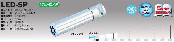 スーパーLEDライトLED-5P 日動(NICHIDO)価格: 980円レビュー評価: 0.0 レビュー数:0 機械内部や配管内の点検作業に!5m先まで新聞が読める■電源 アルカリ単3X1本付■連続点灯 10時間以上■出力 0.5W■照射角 超拡散型■サイズ 90X直径20mm■重量39g(電池込57g)トンネルや暗い場所での点検や検査作業に最適!!登山や夜釣り、キャンプなどのアウトドアにも!防雨型 |