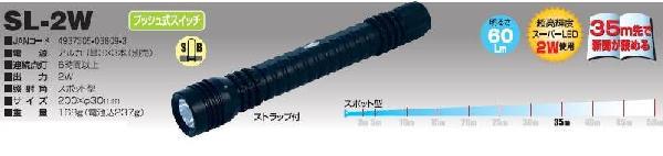 スーパーLEDライトSL-2W 日動(NICHIDO)価格: 4,870円レビュー評価: 0.0 レビュー数:0 パワフルに明るく照らす!35m先まで新聞が読める■電源 アルカリ単4X3本付■連続点灯 8時間以上■出力 1.5W■照射角 スポット型■サイズ 135X直径38mm■重量 125g(電池込175g)トンネルや暗い場所での点検や検査作業に最適!!登山や夜釣り、キャンプなどのアウトドアにも!防雨型 |