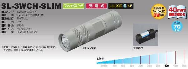 スーパーLEDライト スリムSL-3WCH-SLIM 日動(NICHIDO)【送料無料】価格: 6,820円レビュー評価: 0.0 レビュー数:0 充電式スーパーLEDライトスリムでコンパクトなサイズに驚き!さらに明るさに驚く!40m先まで新聞が読める■電源 リチウムイオン充電池1個■連続点灯 1時間以上■出力 3W■照射角 拡散型■サイズ 75X直径20mm■重量 28g(電池込み46g)キャンプ、車内の明かり、カーメンテナンス、災害時に、その他いろいろな場所でご使用できます。防雨型 |
