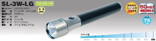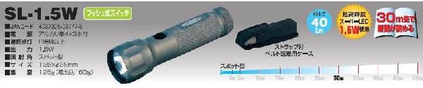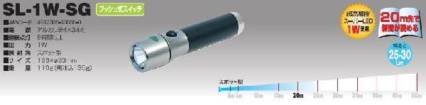 スーパーLEDライトSL-1W 日動(NICHIDO)価格: 3,900円レビュー評価: 0.0 レビュー数:0 パワフルに明るく照らす!20m先まで新聞が読める■電源 アルカリ単4X3本付■連続点灯 8時間以上■出力 1W■照射角 スポット型■サイズ 138X直径38mm■重量 140g(電池込175g)トンネルや暗い場所での点検や検査作業に最適!!登山や夜釣り、キャンプなどのアウトドアにも!防雨型 |