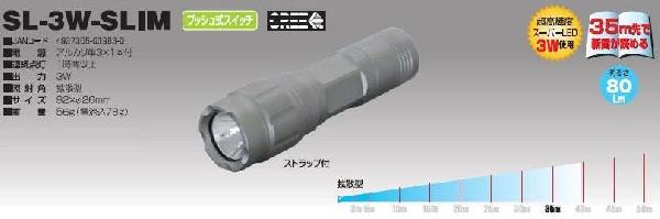 スーパーLEDライト スリムSL-3W-SLIM 日動(NICHIDO)【送料無料】価格: 5,200円レビュー評価: 0.0 レビュー数:0 スリムでコンパクトなサイズに驚き!さらに明るさに驚く!35m先まで新聞が読める■電源 アルカリ単3X1本付■連続点灯 1時間以上■出力 3W■照射角 拡散型■サイズ 92X直径26mm■重量 56g(電池込み78g)キャンプ、車内の明かり、カーメンテナンス、災害時に、その他いろいろな場所でご使用できます。防雨型 |