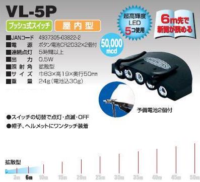 スーパーLEDヘッドライトVL-5P 日動(NICHIDO)価格: 1,300円レビュー評価: 0.0 レビュー数:0 機械のメンテナンスや点検照明に最適!6m先まで新聞が読める■電源 ボタン電池CR2032X2個付■連続点灯 5時間以上■出力 0.5W■照射角 拡散型■サイズ 巾83X高19X奥行50mm■重量 24g(電池込30g)トンネルや暗い場所での点検や検査作業に最適!!登山や夜釣り、キャンプなどのアウトドアにも! |